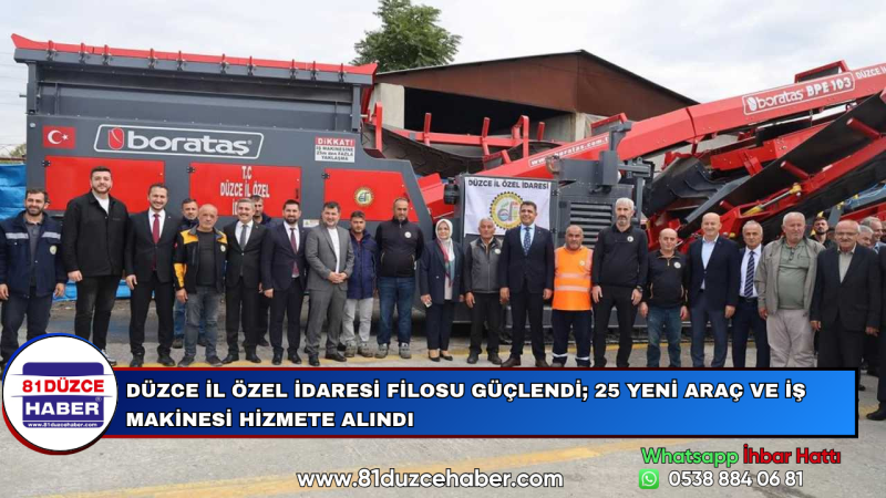 Düzce İl Özel İdaresi, köylere yönelik hizmet kapasitesini artırmak amacıyla 2024-2025 yılları arasında filoya kazandırdığı 25 yeni araç ve iş makinesini düzenlenen törenle hizmete aldı.