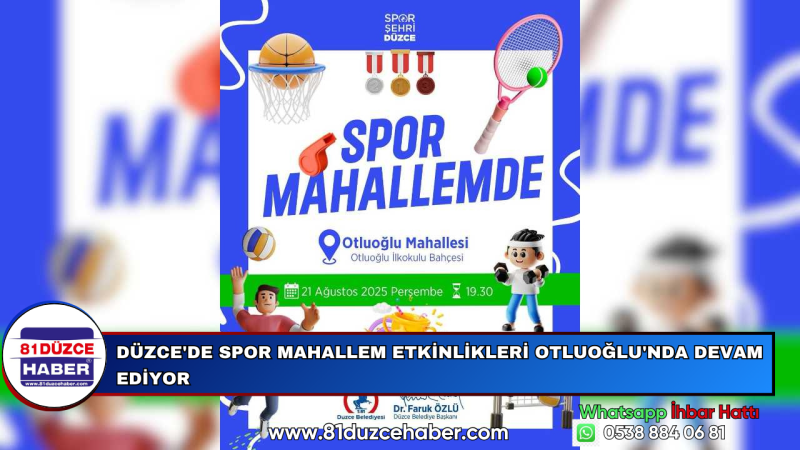 Düzce’de gençlerin ve çocukların sporla buluştuğu “Spor Mahallem” etkinlikleri bu akşam Otluoğlu Mahallesi’nde gerçekleştirilecek.