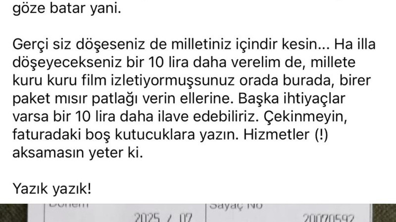 Yılmaz yaptığı paylaşımda şu ifadeleri kullandı: “Hayırdır Sayın Başkan? Devlet maaşınızı vermiyorsa haber et, Düzceliler olarak toplanıp icabına bakalım. Böyle ‘işin özü döşemek!’ dercesine hamleler çok göze batar. Gerçi siz döşeseniz de milletiniz içindir kesin… Ha illa döşeyecekseniz bir 10 lira daha verelim de, millete kuru kuru film izletiyormuşsunuz orada burada, birer paket mısır patlağı verin ellerine. Başka ihtiyaçlar varsa bir 10 lira daha ilave edebiliriz. Çekinmeyin, faturadaki boş kutucuklara yazın. Hizmetler (!) aksamasın yeter ki. Yazık, yazık!” Paylaşım kısa sürede sosyal medyada gündem olurken, çok sayıda vatandaş da benzer şikayetlerde bulundu. Düzce Belediyesi’nden ise henüz resmi bir açıklama yapılmadı. Kamuoyunun tepkisi büyürken, faturalarda yer alan ek kalemlerin şeffaf bir şekilde açıklanması yönünde talepler artıyor.