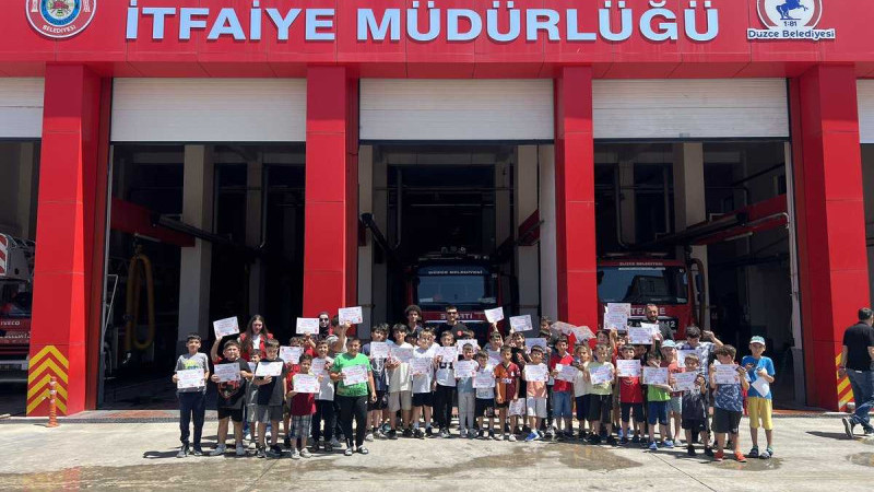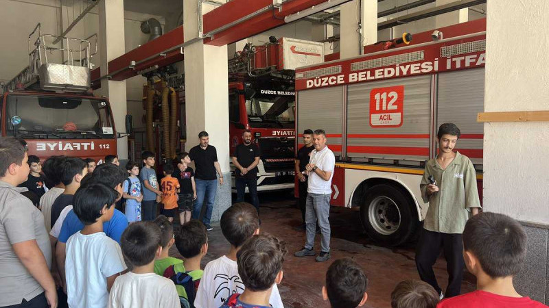 GSB Gençlik Yaz Kulübü öğrencileri, Düzce Belediyesi İtfaiye Müdürlüğü’nü ziyaret ederek yangın güvenliği hakkında bilgi aldı. Ziyaret kapsamında itfaiye personeli tarafından miniklere yangınla mücadele yöntemleri anlatıldı.