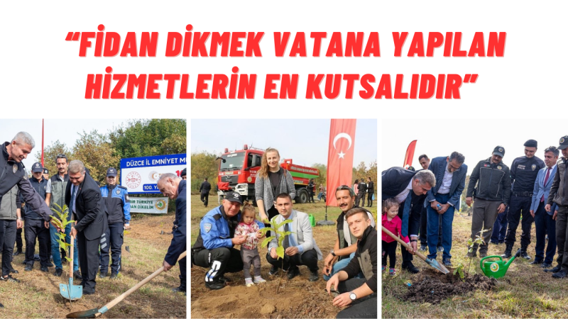Cumhuriyetin 100. yıl kutlama etkinlikleri kapsamında Emniyet Müdürlüğü koordinesinde gerçekleştirilen; Düzce Valisi Selçuk Aslan, Düzce Belediye Başkanı Faruk Özlü, Düzce Emniyet Müdürü İbrahim Ergüder, Düzce Orman İşletme Müdürü Murat Yıldız, sıralı amirler ve ailelerinin katılımı ile birlikte “100. Yıl Hatıra Ormanı’na fidan dikimi gerçekleştirildi. Düzce İl Emniyet Müdürü İbrahim Ergüder “Fidan Dikmek Vatana Yapılan Hizmetlerin En Kutsalıdır” dedi.