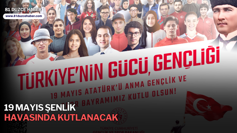 19 Mayıs Atatürk’ü Anma Gençlik ve Spor Bayramı kent meydanlarında coşku ile kutlanacak. Düzce Gençlik ve Spor İl Müdürlüğü Gençlik Haftası etkinlikleri kapsamında program hazırladı.