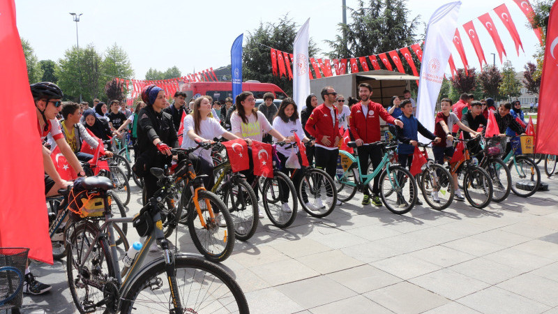 Düzce’de Gençlik Haftası etkinliklerinde gençler 8 kilometre pedal çevirdiler.
