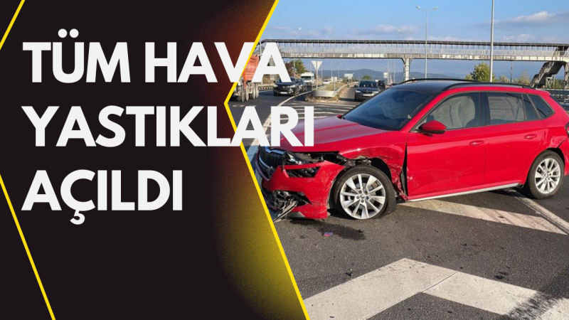 Çarpışmanın şiddetiyle iki aracın ön ve yan kısımlarında yer alan tüm hava yastıkları açıldı.