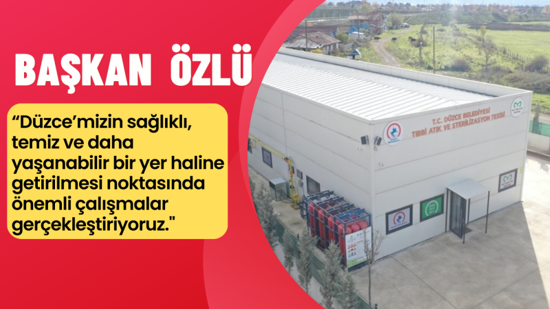 Düzce Belediye Başkanı Dr. Faruk Özlü’nün temiz şehir Düzce çatısı altında hizmete geçirilmesini sağladığı Tıbbi Atık ve Sterilizasyon Tesisi, Tıbbi Atıkların Kontrolü Yönetmeliğiyle tıbbi malzeme kullanımı gerçekleştirilen tüm kurum ve kuruluşlardan toplanan atıkların steril hale getirilerek bertaraf edilmesine katkı sağlamayı sürdürüyor. Toplanan atıkların otoklavla sterilizasyon yöntemi ile bertaraf edildiği tesis, kısa süre içerisinde Düzce’de önemli bir eksikliğin giderilmesine katkı sağlarken, 2023 yılı itibariyle de kuruluş amacı yönünde hizmet vermeye devam etti.