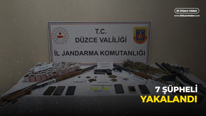 Düzce İl Jandarma ekipleri uyuşturucu operasyonu düzenledi. 7 kişi hakkında adli işlem başlatıldı.
