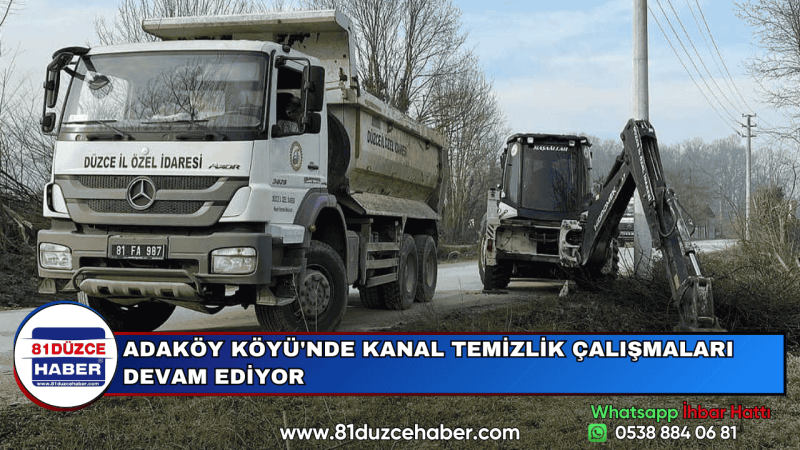 Düzce İl Özel İdaresi ekipleri, Adaköy Köyü’nde kanal temizliği çalışmalarına hız kesmeden devam ediyor.