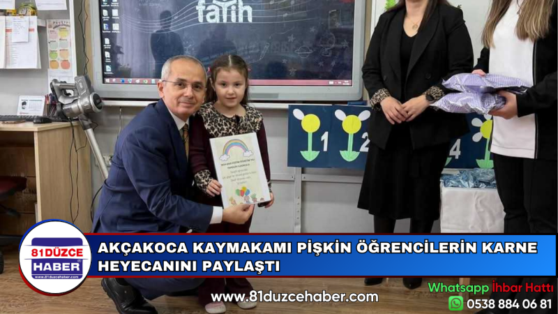 AKÇAKOCA KAYMAKAMI PİŞKİN ÖĞRENCİLERİN KARNE HEYECANINI PAYLAŞTI
