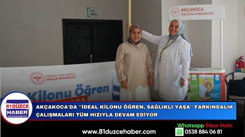 Akçakoca İlçe Sağlık Müdürlüğü tarafından yürütülen “İdeal Kilonu Öğren, Sağlıklı Yaşa” farkındalık çalışmaları kapsamında, ilçede sağlıklı yaşam bilincini artırmaya yönelik etkinlikler aralıksız devam ediyor.