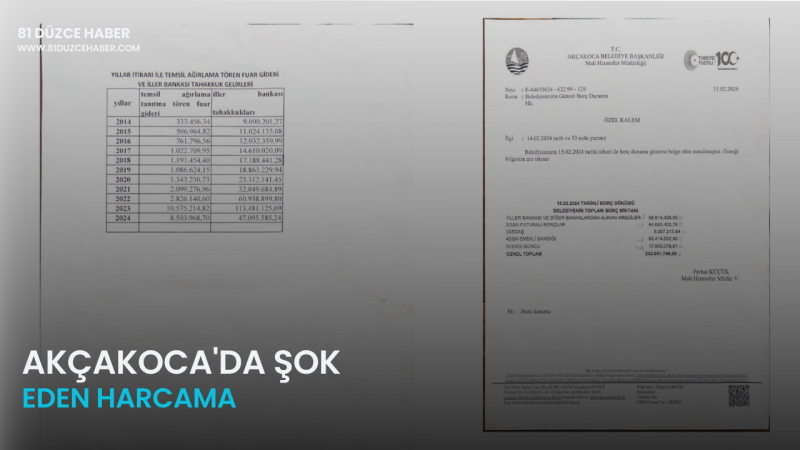 DMHA DÜZCE (ÖZEL HABER ) – DM Haber Ajansı WhatsApp İhbar Hattı 0 539 866 07 81 numarasına gelen belgelere göre Akçakoca Belediyesi’nin 2023 yılında yaptığı toplam harcama 10.575.214,82? iken 2024 yılının ilk iki buçuk ayında 8.503.962.70? oldu. Düzce Merkez nüfusunun 300 bin olduğu günümüzde kültürel faaliyetler için 6 milyon harcanırken Düzce nüfusunun 10'da biri kadar olan Akçakoca ilçesinde yapılan bu harcamaların seçim yatırımı olarak yapıldığı ortaya çıkıyor. Akçakoca halkının sert tepkisine neden olan bu harcama hakkında Belediyeden bir açıklama beklediklerini dile getirdiler.
