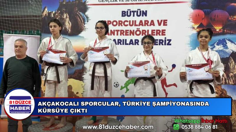 DMHA DÜZCE-1-2 Mart tarihlerinde Nevşehir’de düzenlenen Okul Sporları Türkiye Şampiyonası’na katılan Akçakocalı sporcular, önemli başarılar elde etti. İl şampiyonası sonrası Zonguldak’ta yapılan grup müsabakalarına katılan sporcular, burada aldıkları derecelerle Türkiye Şampiyonası’na katılmaya hak kazanmıştı. Türkiye Şampiyonası’nda da Akçakoca’yı gururlandıran sporcular, kürsüdeki yerlerini aldılar. Şampiyonada dereceye giren Akçakocalı sporcular şu şekilde sıralandı: