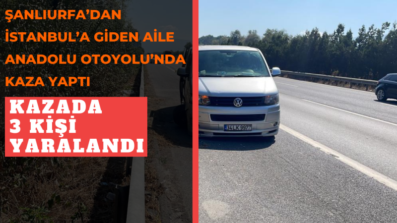 Şanlıurfa'dan İstanbul'a aile ziyaretinden dönenleri taşıyan Salih Sezer idaresindeki 34 LK 9977 plakalı panelvan, Anadolu Otoyolu'nda Gölyaka gişelerine yaklaşık 2 kilometre kala kontrolden çıktı. Emniyet şeridinin yan kısmındaki bariyerlere birkaç kez çarparak durabilen panelvanda yolcu olarak bulunan E.A. (8), Hülya Ateş (34) ve Zeliha Sezer (55) yaralandı. İhbar üzerine bölgeye polis, sağlık ve Karayolları ekipleri sevk edildi. Otoyolun emniyet şeridi dubalarla çevrildikten sonra yaralılara ilk müdahale sağlık ekipleri tarafından kaza yerinde yapıldı. Ambulanslarla çevredeki hastanelere kaldırılan yaralıların sağlık durumunun iyi olduğu belirtildi. Diğer yandan sürücü Salih Sezer'in şeker hastası olduğu ve kaza anında rahatsızlandığı öğrenildi.