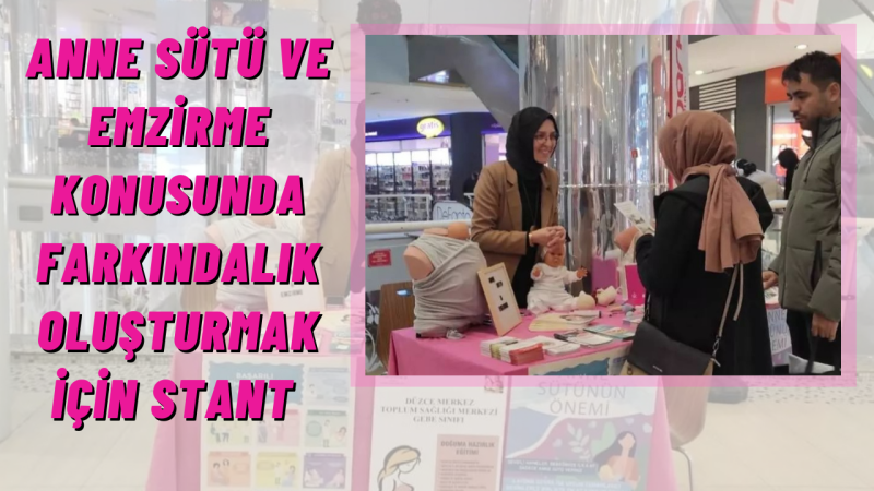 Düzce İl Sağlık Müdürlüğü Sağlıklı Hayat Merkezi Gebe Sınıfında görevli personel tarafından 100. Yıl etkinlikleri kapsamında, bir alışveriş merkezinde Anne Sütü ve Emzirme konusunda farkındalık oluşturmak için stant kurdu.