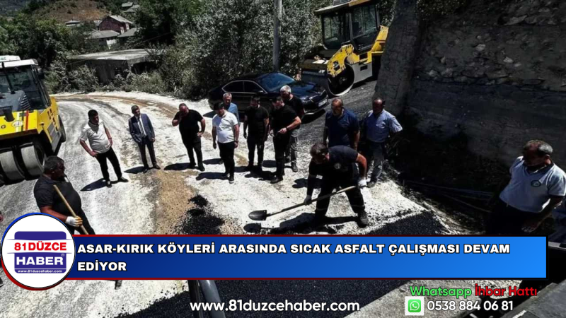 DMHA DÜZCE-Bu kapsamda, Yol ve Ulaşım Hizmetleri Müdürlüğü ekipleri tarafından Yığılca ilçesine bağlı Asar ve Kırık köyleri arasında sıcak asfalt serimi çalışmaları hızla devam ediyor.Sahada yürütülen çalışmaları yerinde inceleyen Düzce İl Özel İdaresi Genel Sekreteri Nuri Çelik, İl Genel Meclis Başkanı Fazlı Koç, İl Genel Meclis üyeleri ve köy muhtarı, hem teknik süreç hakkında bilgi aldı hem de bölge halkıyla bir araya gelerek taleplerini dinledi.Yetkililer tarafından yapılan açıklamada, yol standardını yükseltmek ve kırsalda ulaşımı daha güvenli hale getirmek amacıyla bu tür çalışmaların titizlikle sürdürüldüğü vurgulandı.Düzce İl Özel İdaresi olarak kırsal kalkınmaya katkı sunacak, vatandaşların günlük yaşamını kolaylaştıracak yol yapım, bakım ve onarım çalışmalarının il genelinde devam edeceği bildirildi.