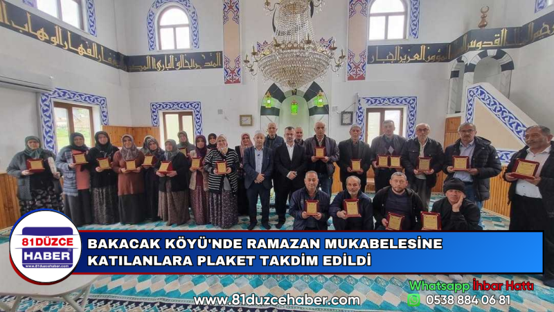 Düzce’nin Gölyaka ilçesine bağlı Bakacak Köyü'nde, Ramazan ayı boyunca gerçekleştirilen mukabele programına katılan 25 vatandaşa plaket takdim edildi.