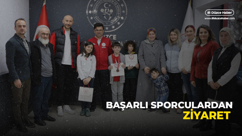DMHA DÜZCE - 02-03 Mart 2024 tarihleri arasında Kocaeli Darıca Eray Şamdan Spor Salonu’nda yapılan U10-12-14 Açık Turnuva Müsabakalarına Düzce Gençlik ve Spor İl Müdürlüğü Eskrim Antrenörü Oğuz Yıldırım eşliğinde katılan sporcular Ahmet Arif Yesirci, Mehmet Uras Küçükkülahlı ve Nisa Mina Doğan İl Müdürü İsa Yazıcı’yı ziyaret etti. Düzce Gençlik ve Spor İl Müdürü İsa Yazıcı başarılı sporculara hediye takdim ederek başarıların devamını diledi.
