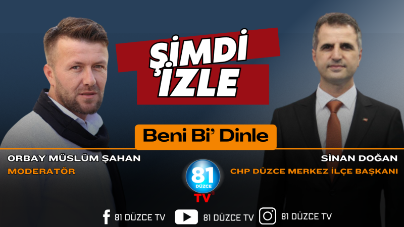 BENİ Bİ’ DİNLE PROGRAMININ BU AKŞAMKİ KONUĞU CHP DÜZCE MERKEZ İLÇE BAŞKANI SİNAN DOĞAN Canlı yayınla 81 DÜZCE TV ekranlarında