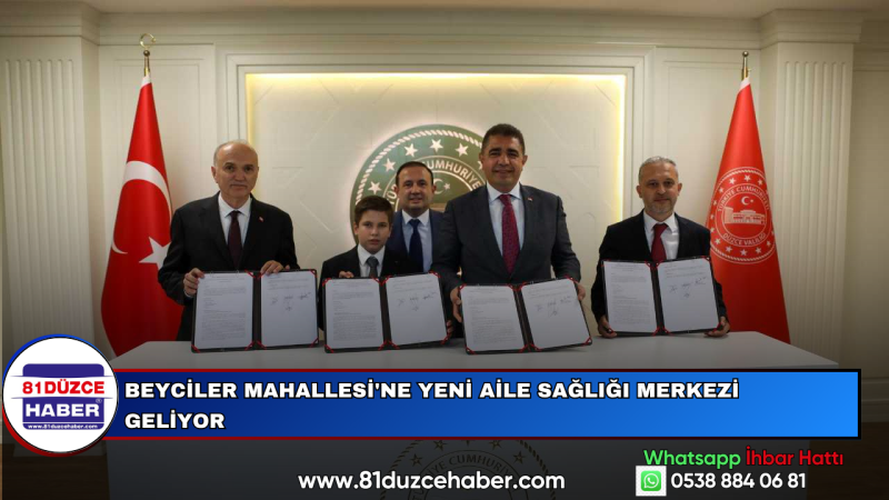 Düzce Valisi Selçuk Aslan, Düzce Belediye Başkanı Dr. Faruk Özlü ve hayırsever iş insanı Tuncay Yavuz, Beyciler Mahallesi'nde inşa edilmesi planlanan Aile Sağlığı Merkezi için bir araya gelerek protokol imzaladı.