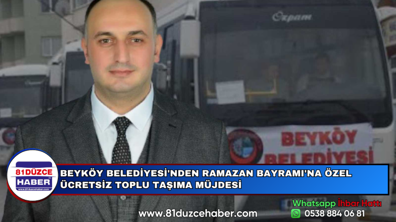 Beyköy Belediye Başkanı Fatih Ocak, Ramazan Bayramı’nın ilk gününde vatandaşların rahatça ulaşım sağlayabilmesi için toplu taşıma hizmetinin ücretsiz olacağını sosyal medya hesabından duyurdu.