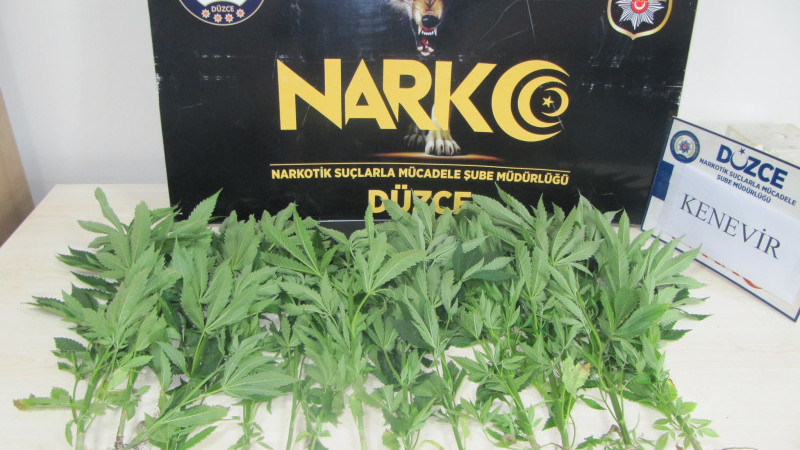Düzce İl Emniyet Müdürlüğü Narkotik Suçlarla Mücadele Şube Müdürlüğü ekipleri Cumhuriyet Başsavcılığı koordinesinde yürüttükleri çalışmalarda kent merkezinde bir binanın teras katında yapılan aramada boyları 50 cm ile 60 cm Aralığında 15 kök kenevir bitkisi ele geçirildi. Şüpheli şahıs hakkında uyuşturucu maddelerin murakabesi hakkında kanuna muhalefet ve uyuşturucu madde bulundurmak kullanmak suçundan adli işlem yapıldı.