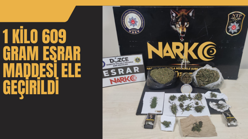 Düzce Cumhuriyet Başsavcılığı’nın uyuşturucu kullanımı ve satıcılarına karşı yürüttüğü soruşturma kapsamında Düzce İl Emniyet Müdürlüğü Narkotik Suçlarla Mücadele Şube Müdürlüğü ekipleri yaptıkları çalışmada 2 adet suç kaydı bulunan E.Y. (45) isimli şahsı yakaladılar. Yakalanan şahsın ikametinde yapılan aramada 12 parça halinde toplam 1 kilo 609 gram Esrar maddesi ele geçirildi. Şahıs göz altına alınarak hakkında adli işlem başlatıldı.