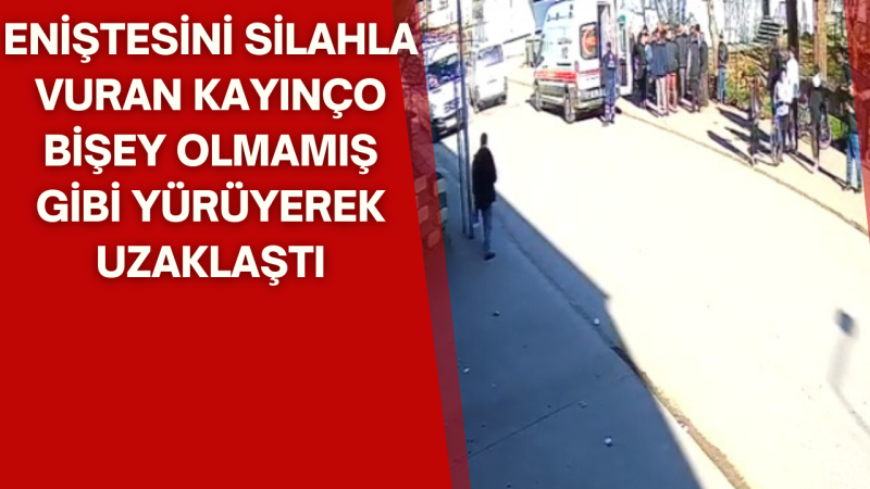 Düzce'de aralarında bilinmeyen bir nedenden olayı husumet bulunan Enişte ile kayınbirader arasındaki tartışmada kan aktı. Eniştesini silahla vuran kayınço bişey olmamış gibi yürüyerek uzaklaştı.