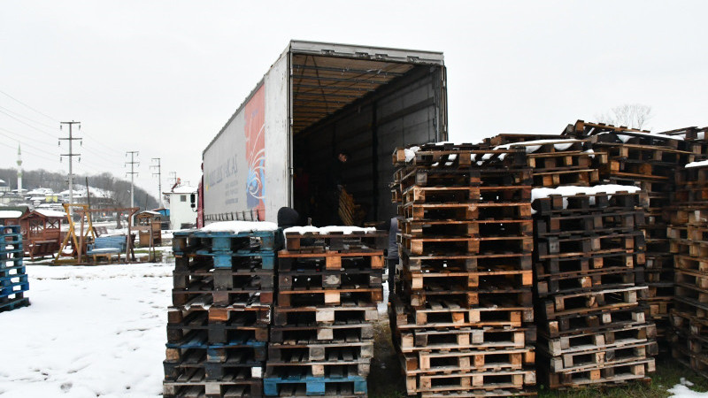 Çadırların altlarına konulmak üzere 2 tır palet gönderdi
