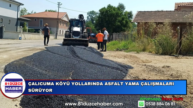 Düzce İl Özel İdaresi Yol ve Ulaşım Hizmetleri Müdürlüğü ekipleri, Çalıcuma Köyü’nde deformasyona uğrayan yollarda asfalt yama çalışmalarını sürdürüyor. Çalışmalarla sürüş güvenliği ve yol konforunun artırılması amaçlanıyor.