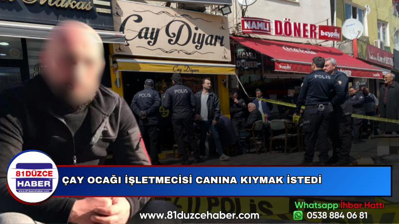 DMHA DÜZCE - Olay öğlen saatlerinde Düzce merkez Gaziantep Caddesi üzerinde meydana geldi. Edinilen bilgiye göre cadde üzerinde bulunan yaptığı çay ocağının işletmecisi Osman A. henüz belirlenemeyen bir nedenden dolay kendi silahı ile canına kıymak istedi. Dükkanda müşterileri varken geçekleştirdiği intihar sonucunda ağır yaralanan Osman A. çevredekilerin ihbarı sonucunda olay yerine gelen sağlık ekipleri tarafından hastaneye kaldırıldı. Yaşanan olay sonrasında bölgeye çok sayıda polis ekibi sevk edildi. Polis ekipleri konu ile ilgili soruşturma başlattı