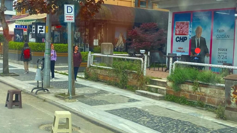 Tabure yüzünden durağa yanaşamayan belediye otobüsleri yolun ortasında yolcu indirip bindirmek zorunda kalıyorlar ve trafiği tıkıyorlar. Vatandaşlar CHP’nin bu nobran tavrını ilgili yerlere şikayet ettiklerini ancak bir sonuç alamadıklarını söylediler.