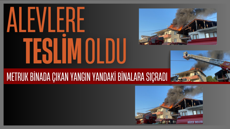 Edinilen bilgiye göre, saat 18.30 sıralarında Karaca Mahallesi Çileli Sokak'ta metruk bir binada yangın çıktı. Alevler büyüyerek yan bitişiğindeki iki binanın çatısına sıçradı. Yangını gören mahalle halkı, 112 Acil Çağrı Merkezine ihbarda bulundu. Olay yerine itfaiye, polis ve sağlık ekipleri sevk edildi. Kısa sürede olay yerine gelen Düzce Belediyesi İtfaiye Müdürlüğü ekipleri, yangını kontrol altına alarak söndürdü.