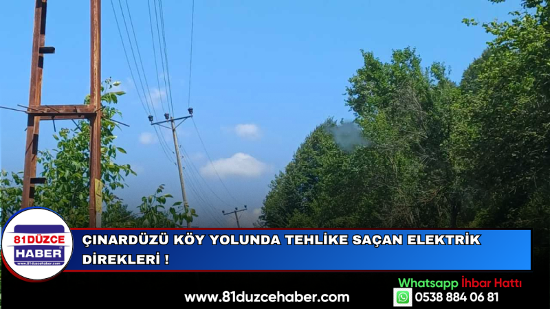 Düzce’nin Beyköy Beldesi Çınardüzü köyü’nde yol kenarında bulunan elektrik direkleri tehlike saçmaya devam ediyor.
