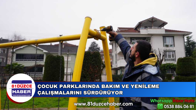 DMHA DÜZCE - Düzce Belediyesi, mahallelerde bulunan çocuk parklarının oyun alanlarını daha keyifli ve güvenli hale getirmek için bakım ve yenileme çalışmalarını sürdürüyor. Belediye ekipleri tarafından yürütülen çalışmalar kapsamında, oyun alanlarındaki ekipmanlar onarılıyor, eksiklikler gideriliyor ve çocukların daha eğlenceli vakit geçirebilmesi için alanlar düzenleniyor. Düzce Belediyesi’nden yapılan açıklamada, “Her bir çocuğun mutlu ve sağlıklı bir şekilde vakit geçirmesi için çalışmalarımızı aralıksız sürdürüyoruz” ifadelerine yer verildi. Yapılan bu yenileme çalışmaları, hem çocuklar hem de aileler tarafından memnuniyetle karşılanıyor.