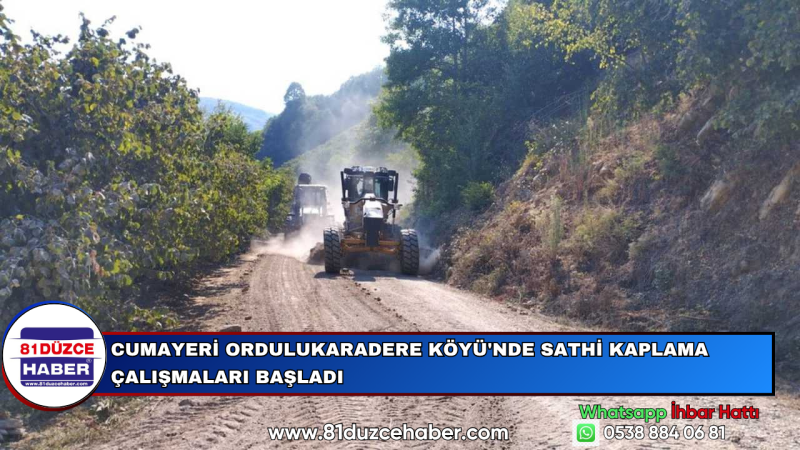 Cumayeri Ordulukaradere Köyü'nde Sathi Kaplama Çalışmaları Başladı