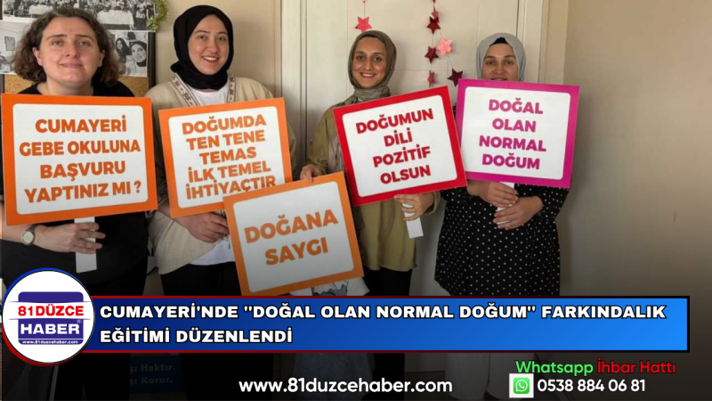 DMHA DÜZCE-Gebe Okulu Koordinatör Ebesi Nagehan Topaloğlu tarafından verilen eğitimde, normal doğumun önemi ve faydaları ayrıntılı şekilde anlatıldı.Eğitimde; normal doğumun anne ve bebeğe sağladığı yararlar, anne sütü, gebelikte beslenme, doğum süreci, doğum ağrısıyla baş etme yöntemleri, doğum çantasının hazırlanması, yenidoğan taramaları ve bakımı gibi konular ele alındı. Katılımcılara ayrıca bilgilendirici broşürler dağıtıldı.Cumayeri İlçe Toplum Sağlığı Merkezi yetkilileri, sezaryen oranlarını azaltarak anne ve bebek sağlığını iyileştirmeyi hedeflediklerini belirtti.