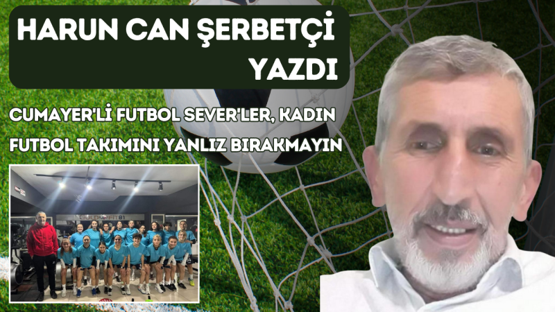 Harun Can Şerbetçi CUMAYER'Lİ FUTBOL SEVER'LER, KADIN FUTBOL TAKIMINI YANLIZ BIRAKMAYIN başlıklı köşe yazısını yayımladı.