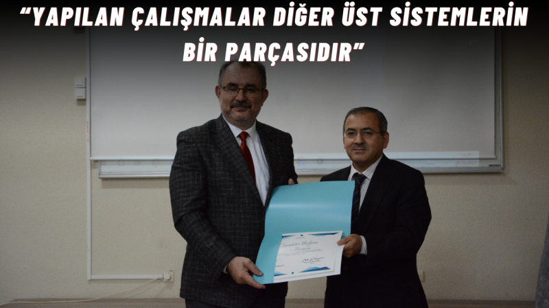 “Ağaca Bakarken Ormanı Görmek…” cümlesini “uzmanlık” kelimesiyle açıklayan misafir konuşmacı, araştırmacı bir kişinin, çalışmasını yürütürken, yaptığı çalışmayla ilgili diğer üst sistemlerle de bağlantısını ve etkisini göz önünde bulundurması gerektiğini vurguladı. “Yapılan çalışmaların diğer üst sistemlerin bir parçası olduğunun unutulmaması gerekir.” diyen Prof. Dr. Kayacan, önemli olanla, daha önemli olanın ayırt edilmesi gerektiğini ifade etti. Kayacan ayrıca, genele bakılmadığı zaman daha önemlinin fark edilmediğini de sözlerine ekledi.