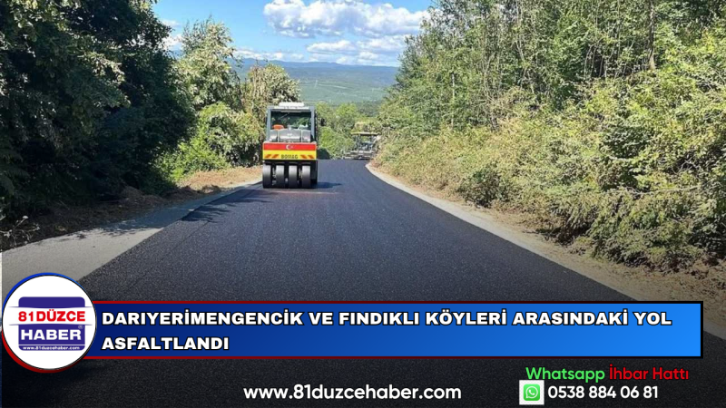 Düzce İl Özel İdaresi Yol ve Ulaşım Hizmetleri Müdürlüğü ekipleri, Kaynaşlı ilçesine bağlı Darıyerimengencik ve Fındıklı köyleri arasında yürüttüğü sıcak asfalt serim çalışmalarını tamamladı.