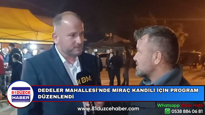 Dedeler Mahallesi Muhtarı Fatih Gül’ün öncülüğünde mahallenin camisinde Miraç Kandili için maneviyatı yüksek bir program düzenlendi.