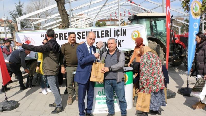 Depremde hayatını kaybedenler için fidan dağıtıldı