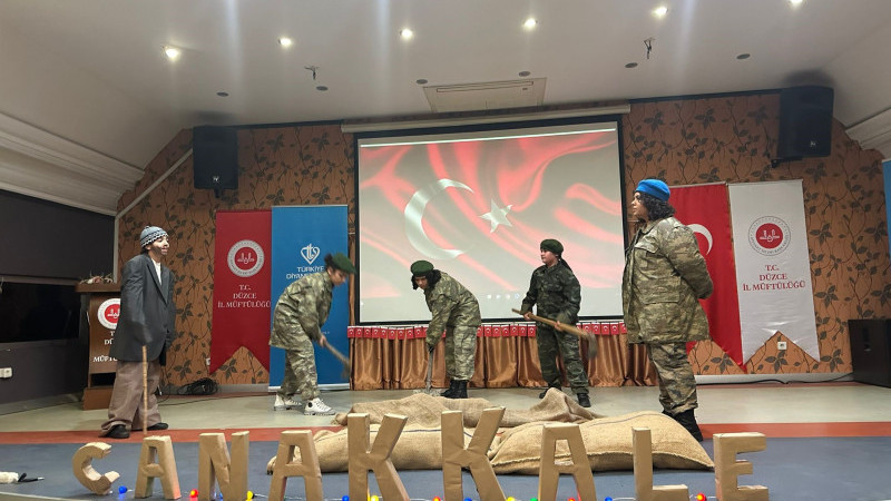 Düzce’de misafir edilen depremzede çocuklar Çanakkale Ruhumuzda Var konulu tiyatro gösterisi sergilediler.