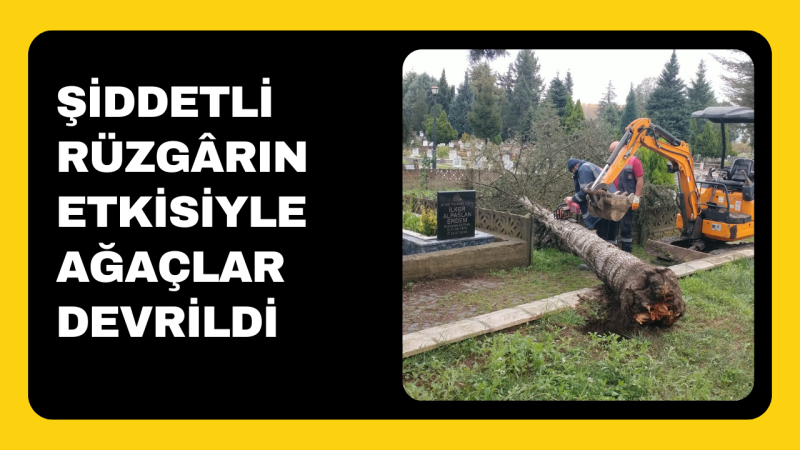 Düzce’de hafta sonu etkili olan fırtına nedeniyle kökünden sökülerek devrilen ağaçlar Şehir Mezarlığı’nda hasara yol açtı.