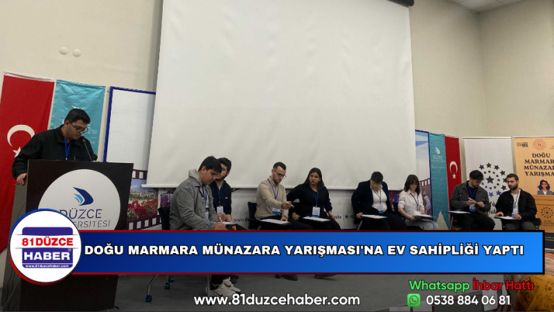 DMHA DÜZCE-Yarışma, Doğu Marmara illerinden gelen üniversite öğrencilerinin katılımıyla büyük bir heyecan içinde gerçekleşti.Münazara yarışmasında, farklı üniversitelerden katılan takımlar kıyasıya mücadele etti. Bilecik Şeyh Edebali Üniversitesi, Düzce Üniversitesi ve Yalova Üniversitesi sırasıyla birinci, ikinci ve üçüncü olarak jürilerin oylarıyla belirlendi.Yarışmaya izleyici olarak katılan Prof. Dr. İlhan Genç ve Akçakoca Kaymakamı Mehmet Deniz Pişkin, yarışmacılara ve organizasyona olan ilgilerini göstererek etkinliğin heyecanına ortak oldular.Yoğun katılım ve büyük bir heyecan içinde geçen Doğu Marmara Münazara Yarışması, üniversite öğrencilerinin düşünsel becerilerini geliştirmeleri ve farklı bakış açılarıyla tartışmalar yapmalarına olanak sundu.
