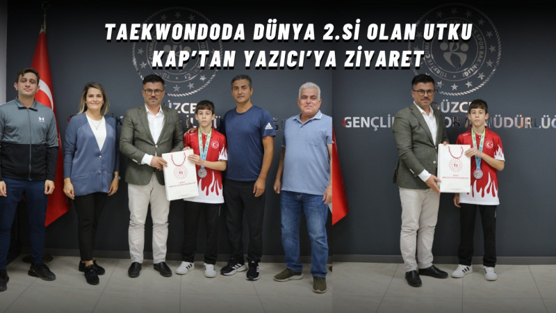 28-31 Ağustos 2023 tarihleri arasında Bosna Hersek’in başkenti Saraybosna’da düzenlenen Dünya Yıldızlar Taekwondo Şampiyonası’nda Düzce sporcusu Utku Kap ikinci oldu. Başarılı sporcu Utku Kap, antrenör Hakan Şengönül ve Taekwondo İl Temsilcisi Kemal Yolay ile İl Müdürü İsa Yazıcı’yı ziyaret etti. Düzce Gençlik ve Spor İl Müdürü İsa Yazıcı, Dünya ikincisi sporcu Utku’yu tebrik ederek hediye takdim etti.