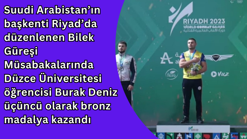 Suudi Arabistan’ın başkenti Riyad’da düzenlenen 2023 World Combat Games Bilek Güreşi Müsabakalarında Düzce Üniversitesi öğrencisi Burak Deniz üçüncü olarak bronz madalya kazandı