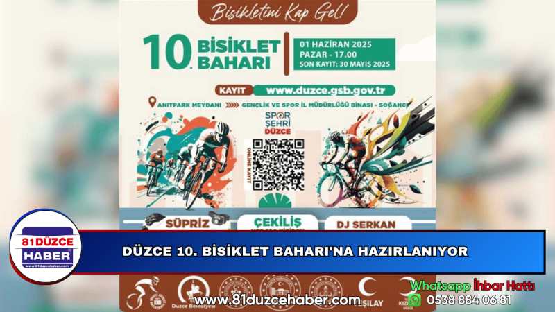 Düzce’de geleneksel hale gelen ve bu yıl 10’uncusu düzenlenecek olan Bisiklet Baharı, 01 Haziran 2025 Pazar günü bisiklet tutkunlarını Anıtpark Meydanı’nda buluşturacak. Saat 17.00’de başlayacak etkinlikte, şehir genelinden yoğun katılım bekleniyor.