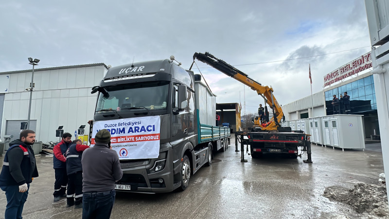 Kahramanmaraş merkezli depremlerin ardından afet bölgelerine yardımlarını sürdüren Düzce Belediyesi, onlarca tır yardım malzemesi göndermişti. Büyük bir ihtiyaç olan seyyar tuvalet ve duş kabinleri de Destek Hizmetleri Müdürlüğü'nde imal edilmesinin ardından, Afşin ve Elbistan'a doğru yolu çıktı.