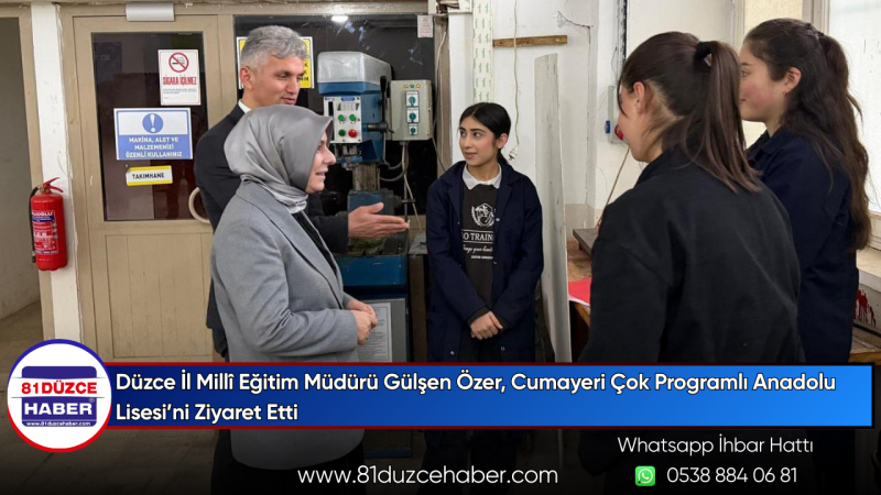 Düzce İl Millî Eğitim Müdürü Gülşen Özer, Cumayeri programı kapsamında Cumayeri Çok Programlı Anadolu Lisesi’ni ziyaret ederek okulun eğitim ortamlarını yerinde inceledi.
