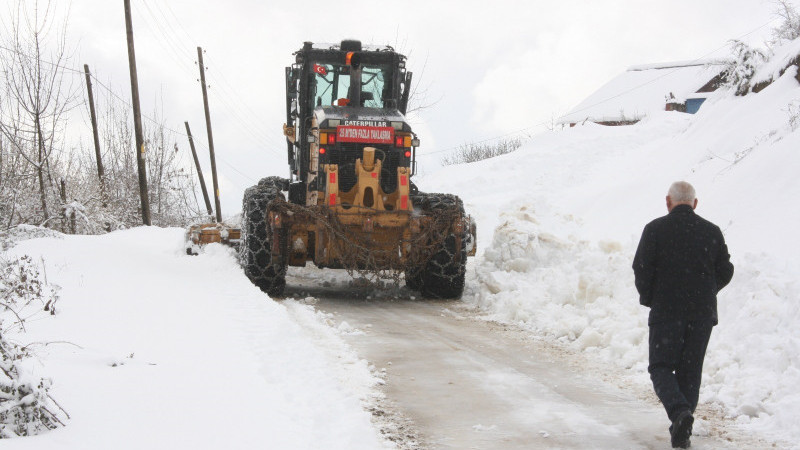 Düzce’de kar yağışından dolayı kapanan köy yollarını açan İl Özel İdaresi ekipleri hasta olanlara öncelik veriyor.