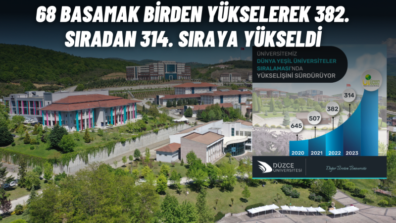 Dünyadaki canlıları korumak ve yaşamı devam ettirebilmek için zararlı fosil yakıtlı enerjilerden, çevreyi koruyan yeşil enerjiye geçilmesi zorunlu hale gelmesi sonucunda Düzce Üniversitesi, bu değişim ve dönüşümü sağlamak, bilinçli bireyler yetiştirmek adına çalışmalarını yoğunlaştırdı. Dünya üniversitelerini; altyapı, iklim değişikliği, çevreye duyarlılık, enerji kullanımında tasarruf, atık, su, ulaşım yönetimi ve eğitimde sürdürülebilirlik gibi ilkelere göre değerlendiren Endonezya Üniversitesi’nin yaptığı GreenMetric sıralamasında Düzce Üniversitesi, 68 basamak birden yükselerek dünya üniversiteleri arasında 314. sıraya yerleşti.